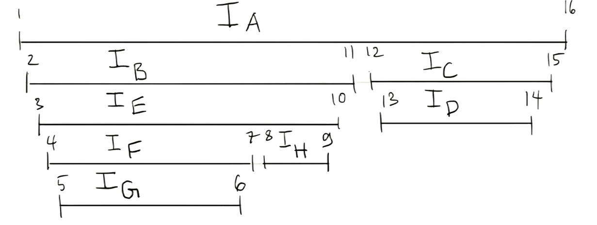 is impossible b/c would already be visited in ‘s recursive call. Overlapping but not nested intervals are impossible due to the recursive nature of DFS.